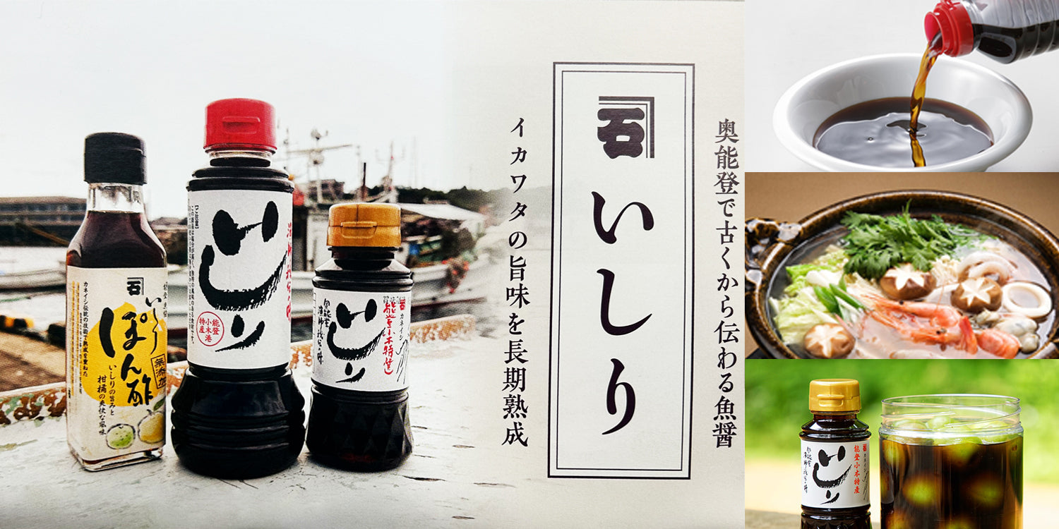 能登半島小木港で水揚げされた船凍イカを初め、イカの塩辛・黒造り、もみイカ・干しホタルイカ、魚介類の一夜干し、北洋沖獲りの時鮭、いくらの醤油漬け、無着色たらこ、珠洲の海で採れた天然海藻、天然アワビ・サザエ等の魚介類や奥能登に古くから伝わる魚醤いしりを初め、いしりぽん酢、能登の海洋深層水塩、珠洲の天然塩等の天然調味料。